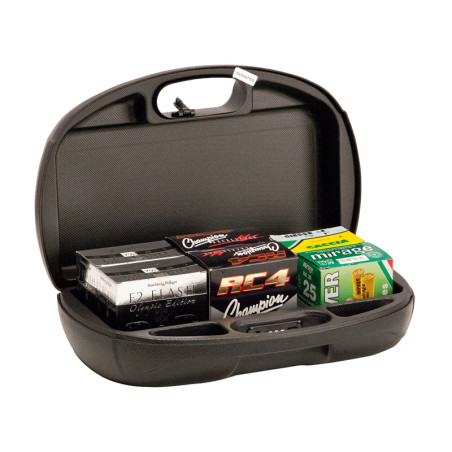 Dimensions internes : Longueur 34cm, Largeur 18cm, Hauteur 11cm. Fermeture à code. Capacité 150 cartouches.TYPE OUVERTURE: Verrous à code