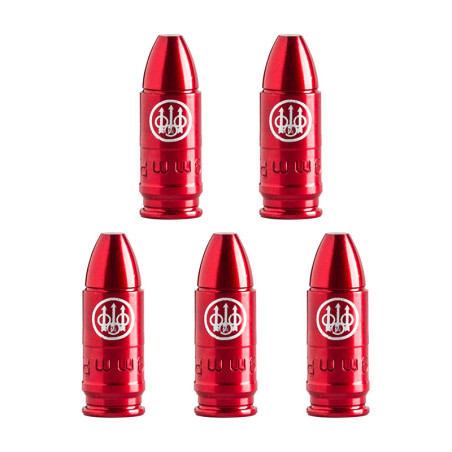 Jeu de 5 douilles amortisseur pour pistolets, en aluminium anodisé rouge. Impression du logo Beretta sur le devant et calibre estampé.
