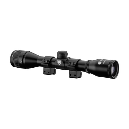 Grossissement 4 fois|Diamètre objectif : 32 mm|Poids : 320 g / Longueur : 310 mm|Réticule Mildot|Tourelles de réglages sans outils.|Montage aluminium pour rail prismatique de 11mm|Livrée avec caches objectifs translucides, clef 6 pans et chiffon optique|Diamètre corps : 1’’ (25,4 mm)