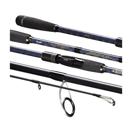 La NITRO S 2402 MH BLUE TRACKER est une canne deux brins très polyvalente pour la pêche du bar et du lieu du bord comme en bateau, aux leurres de surface (BONNIE 95, 107 et 128, RISER BAIT 008, CHATTERBEAST 110); et aux poissons nageurs leurres (WATER MONITOR 95, STREAM RIPPER 90 et 110, RERANGE SERIES), de leurres de type Blade Bait ou casting jig (RUNNER BLADE 90 et 115, MICRO SLOW LAZY JIG 14 et 24g) et aux ?leurres souples montés jusqu'à 25g en linéaire ou en traction (NITRO SHAD 90 et 120, NITRO SLIM SHAD 110 et 150, MAGIC SLIM SHAD 5 et 7, DEXTER SHAD 110). Sa longueur de 2,40m autorise des lancers à grandes distances, des animations plus amples, un meilleur contrôle de ligne dans les courants tout en diminuant les risques d'abrasion de la ligne lors des combats. Cette canne est associée à la dernière génération de composants FUJI. Anneaux FUJI ALCONITE 'K' afin d'éradiquer tout risque d'emmêlement de votre ligne dans les anneaux lors des lancers, quelles que soient les conditions rencontrées. Le porte-moulinet VSS assurera un confort et une prise en main optimale tout au long de votre session de pêche ! Cette canne est livrée avec une housse sérigraphiée.