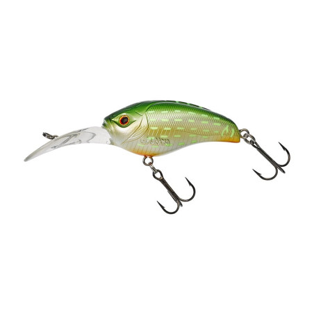 Un crankbait GUNKI de 55mm dont la présence est vite perçue par les carnassiers grâce au fort volume d'eau qu'il déplace. Le GIGAN 55F se désaxe très facilement dès qu'il lui faut contourner sur son chemin une branche ou une pierre. Sa bavette réalisée à partir d'un plastique polycarbonate très solide est tout indiquée pour ceux qui veulent 'cogner le fond' en pratiquant le 'bottom taping'. Ce GIGAN est taillé pour les pêches plus profondes où son 'wobbling' prononcé (et un très léger 'rolling') ne laisseront pas insensibles, perches, sandres et autre brochets. Sur ce modèle, nous avons volontairement réduit la signature sonore pour prolonger son utilisation tout au long de la saison, quand les conditions deviennent difficiles et les poissons méfiants.