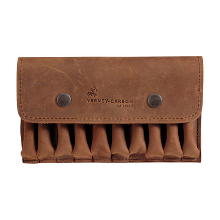 Pochette en cuir de vache comprenant le logement de 10 munitions rayées.|L:19cm,l:11cm,P:2cm|Poids: 0,123kg