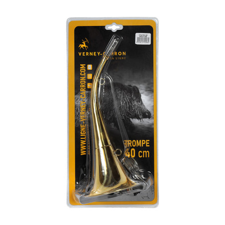 Trompe droite en laiton avec anneaux. Poinçon Sagittaire. 14 cm m