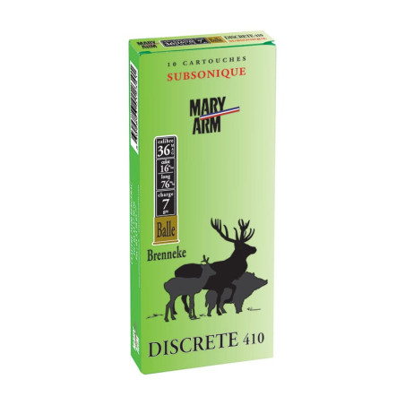 Les munitions subsoniques étant de plus en plus recherchées sur le marché français, MARY ARM a décidé de décliner dans notre référence "DISCRETE" toute une gamme de cartouches dans les calibres : 12 - 12 mm - 14 mm - 410.|Ces munitions tirées dans des armes munies de silencieux seront très efficaces tant pour leur discrétion que pour leur pénétration.