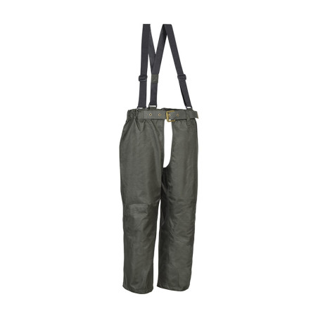 100% polyester double ripstop 900 deniers, enduction polyuréthane, imperméable et respirante, coutures étanches, doublure 100% polyester.Fentes passe-mains, 1 poche, ceinture élastiquée et antiglisse, genoux préformés, renforts aux genoux. Passants de ceinture intérieurs. Bretelles élastiques, ajustables et amovibles.