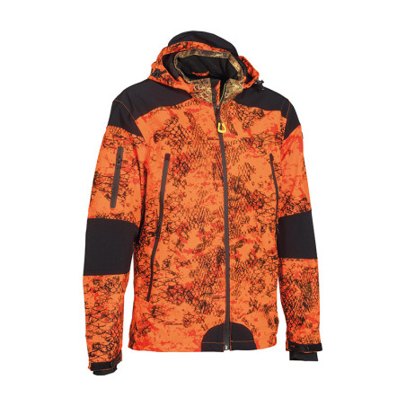 Blouson silencieux, souple, étanche et respirant. Tissu 100% polyester avec empiècements extensibles 92% polyester, 8% élasthanne. Membrane imperméable et respirante. Coutures soudées. Doublure filet 100% polyester.|Capuche tempête réglable et détachable. Système d'aération zippé sous les bras. Double poche zippée étanchée avec double curseur. Cartouchière intégrée pour cartouche dans une poche basse et pour balle dans l'autre. Une poche zippée étanchée sur le bras. Poche zippée intérieure. Grand carnier zippé et|étanche. Poignets ajustables avec manchon coupe-vent.