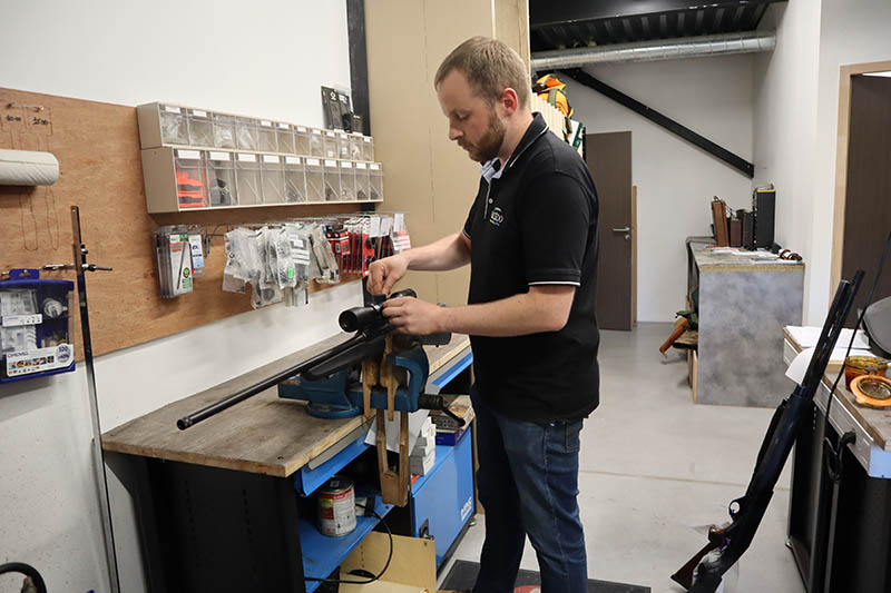 Nos services comprennent : Service après-vente, mise en conformité des armes, réparation d'armes toutes marques, montage et réglages optiques, travail du bois (poncé huilé, quadrille, crosse sur mesure), accompagnement administratif, etc..