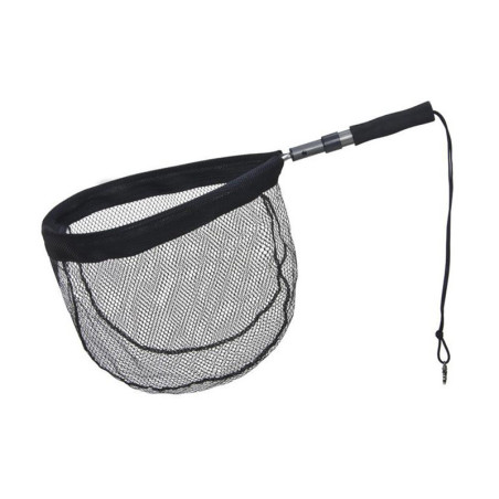 Épuisette de wading en aluminium de belle qualité, très légère, suffisamment profonde et avec une ouverture assez large pour accueillir de beaux poissons.|Le filet est traité anti accrochage (filet enrobé) pour que les hameçons ne se prennent plus dans ses mailles. |Le manche est télescopique sur quelques centimètres afin d'augmenter l'allonge à l'aide d'une seule main grâce au système de déblocage par torsion.|Cordon élastique de 40cm muni d'un mousqueton.|Le filet est très facilement remplaçable grâce à la fermeture éclair.|Les filets sont également vendus séparément.