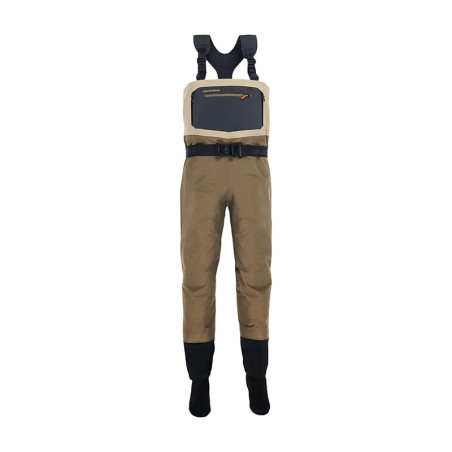 Le Boundary Stockingfoot Wader dispose de la technologie GORE-TEX Pro Wader avec 3 couches pour le haut du corps et 4 couches en bas afin d’offrir une grande respirabilité, une bonne résistance à l’abrasion et une liberté de mouvement inégalée dans et hors de l'eau. Sa conception visant à supprimer les coutures dans les zones habituellement exposées à de forts risques d’usures et son double tissage de protection au-dessus des chaussures lui offrent une durée de vie prolongée. Son système de bretelles réglable est inspiré des harnais d’escalade haut de gamme pour offrir au pêcheur un confort maximal tout au long de la journée. Il est équipé d’une poche de rangement spacieuse et d’une poche chauffe main doublée en polaire au niveau de la poitrine. Ses chaussons en néoprène sont élaborés avec deux couches de revêtement en titane qui augmentent grandement la rétention de chaleur corporelle vers les pieds pour un confort et une chaleur optimale dans l'eau froide.
