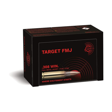 La munition d'entrainement|Les GECO TARGET FMJ sont synonymes de réussite de l‘entraînement. Un entraînement constant sur le pas|de tir est essentiel. Les produits GECO TARGET FMJ, grâce à sa boîte de 50 munitions, permet un bon rapport qualité-prix