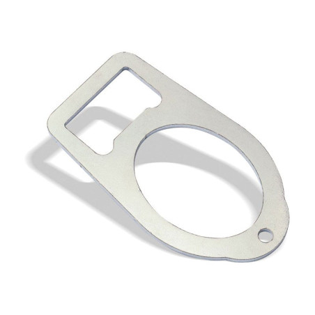 Calibre à palourdes inox ovale muni d'un décapsuleur. ¤¤- Décapsuleur¤- Trou de suspension¤- Taille 40 mm¤¤Fabriqué en France dans nos ateliers !