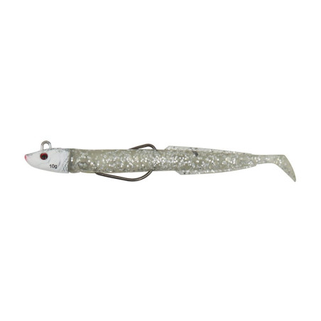 Cette nouvelle génération de shad est montée d’origine en texan afin de pouvoir pêcher les endroits les plus encombrés sans accroches.Sa tête plombée ne pesant que 10 gr ou 20 gr, le « Junior » pourra être utilisé en lancer – ramener dans toutes les zones de faibles fonds telles que les plages, les champs de laminaires, les parcs à coquillages, etc.Un leurre particulièrement recommandé lors de conditions difficiles (eaux très claires, forte luminosité, etc.) ou pour les pêches très fines en estuaires, en étangs salins ou encore en Méditerranée.Idéal pour les pêches lights de poissons méfiants, le Blue Equille Junior fera merveille quand les bars chassent des lançons ou des orphies de petites tailles.Petite caudale : - Renvoie des pulsations plus fines qu’un shad classique.Parfait pour les poissons difficiles.Moins de résistance à la traction. - Imitation parfaite de la nage fluide d’un véritable lançon.La forme très hydrodynamique du Blue Equille offre de multiples avantages :- Plongée plus rapide qu’avec un shad classique.- Sa tête plombée ultra fuselée associée à son corps fin et sa petite caudale n’opposent que très peu de résistance aux courants Tête articulée : - Amplifie les mouvements du leurre : nage plus naturelle et moins de décrochages lors du combat.- Tête et corps assortis. Anti-accroche : - Montage texan : la pointe affleure le dos du leurre. Possibilité de repiquer la pointe de l’hameçon dans la peau du leurre (montage « Tex Skinned »)Ferrage instantané : - La fente ventrale permet de libérer l’hameçon pour un ferrage automatique.Ultra souple : - Nage tout seul dans le courant. - Mouvements naturels. - Ventre fendu : la fente ventrale permet de libérer l’hameçon pour un ferrage automatique.
