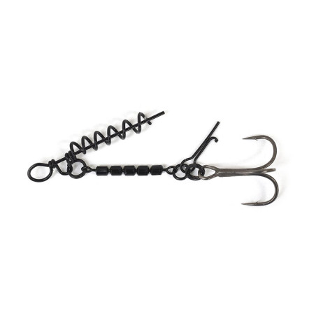 L’Ulti Shallow Rig Short est un montage composé d’émerillons barils assemblés les uns aux autres pour limiter les risques de décrochage en lui laissant la possibilité de tourner sur lui-même sans que le poisson prenne appui sur le leurre pendant le combat. Idéal pour les leurres souples de 12 à 15 cm, il est équipé d’un hameçon triple DECOY YF-33F 2.