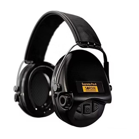 Le casque antibruit Supreme Pro-X combine une protection optimale avec une amplification élevée, une entrée AUX et un compartiment à piles étanche. Il est disponible avec des coques vertes ou noires, avec un bandeau pliable ou en version tour de cou. Il est équipé d‘origine d‘un coussin d‘étanchéité confortable en mousse.|• Microphones étanches (testés IP67)|• Bandeau camouflage en option|• Coques conçues pour s‘adapter aux tireurs droitiers et gauchers|• Bandeau ou tour de cou pratique et pliable|• Deux microphones séparés et bien protégés pour une localisation optimale de la direction du son|• Amplification élevée et reproduction naturelle du son, sans coupure ni interruption|• Entrée audio (AUX) pour connecter des sources audio externes, telles que la radio|• Câble avec prise jack mono 3,5 mm inclus
