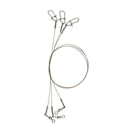 Bas de ligne ultra fin et souple, fabriqué à partir d’acier à haute teneur en carbone, qui est bouclé à chaque extrémité afin d’obtenir une présentation finesse|pour les petits leurres durs et les petits leurres souples.Cdt de 3 pcs