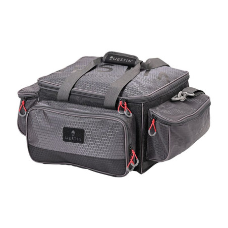 The name says it all - the W4 Jumbo Lure Loader comes with 4 Westin boxes to fit all your favorite big lures. This bag has large pockets to fit all kind of accessories. One pocket is fitted with an elastic tool organizer to keep pliers and tools in the right place.||* 54 x 40 x 25 cm|* Main Material: Double Woven Hexagon Polyester with coating |* 3 Westin Tackle Boxes B02-706-036 (36 x 22,5 x 8 cm) + 1 Westin Game Tackle Box B03-706-036 (36 x 22,5 x 8 cm) included|* Water resistant materials|* 2 large side pockets for tools and accessories|* 1 large front pocket with interior mesh pocket|* Padded carry handle and removable padded shoulder strap|* Reinforced and water resistant bottom
