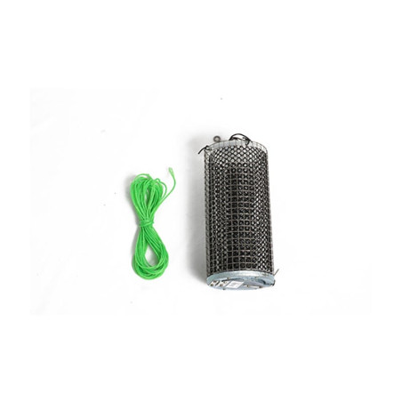 Amorçoir rond¤- Grillage extérieur : inox maille 10X10mm¤- Grillage intérieur PVC maille 7X6mm¤- Hauteur 250 mm¤- ø 120 mm¤- Maille 10 x 10 mm¤-Ouverture par le Fond¤- Lesté 0,9 kg¤- Livré avec cordelette 5m ø 3 mm